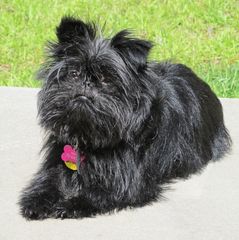 Der Affenpinscher zählt zur Familie der Pinscher und Schnauzer. Er und der Zwergpinscher sind die kleinsten Vertreter dieser Rassefamilie. Von den anderen Pinschern unterscheidet er sich unter anderem durch sein raues Fell, den verkürzten Fang und den Vorbiss. Der Nasenrücken muss gerade sein. Bei geschlossenem Fang dürfen die Zähne nicht sichtbar sein. Der Name Affenpinscher stammt angeblich von dem affenartigen Gesichtsausdruck. Diese Hunde sind 25 bis 30 cm groß bei einem Gewicht von 4 bis 6 kg. Das Fell ist laut Standardimmer schwarz mit schwarzer Unterwolle. Ein brauner oder grauer Anflug ist unerwünscht.
